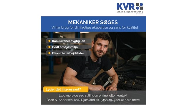 KVR Djursland Vikar & Rekruttering søger en erfaren mekaniker til en virksomhed i Auning. Stillingen tilbyder fleksible arbejdstider og en konkurrencedygtig løn. For mere information, læs det oprindelige opslag.
